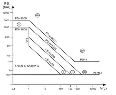 Die finale Einstufung erfolgt anhand der Diagramme in Anhang II der Druckgeräterichtlinie. Es existieren neun Diagramme, abhängig von: